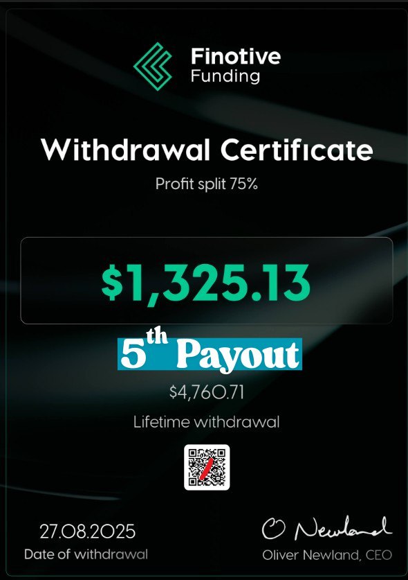 Received my 5th payout in a row—smooth and hassle-free as always. If you stick to the rules, Finotive Funding is truly the best in the world! The only thing I dislike is SL rules.